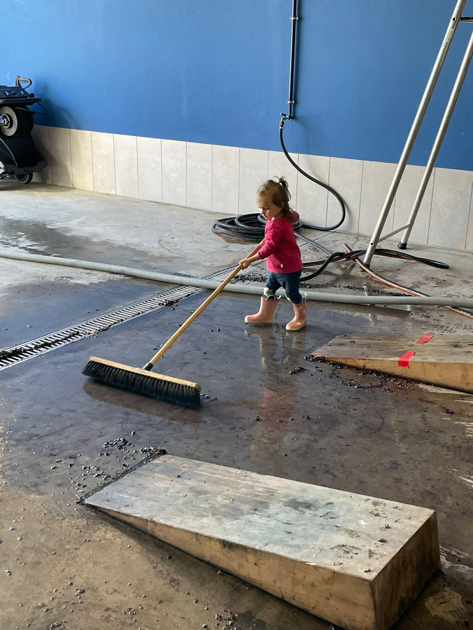 Nun geht die Arbeit im Keller weiter - die Kleinsten waren natürlich auch mit dabei und haben Walter und Julian tatkräftig unterstützt.